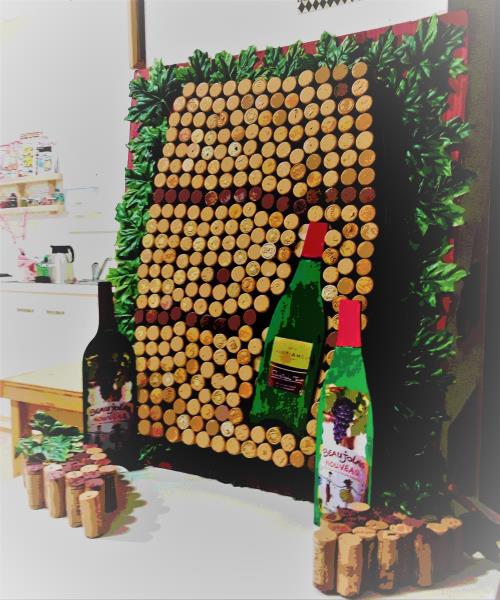 Le savoir faire de la responsable hôtelière et du chef-cuisinier nous a permis résidence Jean Rostand de fêter le troisième jeudi du mois de novembre, le BEAU, JO, LAIT, c'est nouveau! De la charcuterie, des grappes de raisins et le breuvage ont été apprécié des résidents. Un quizz sur les crus, animé par l'animatrice, Frédérique, a favorisé l'échange, le partage, pendant le repas. Cet événement a été l'occasion de mettre en valeur, les réalisations de l'ensemble des résidents, (tonneau en bouchon de liège).