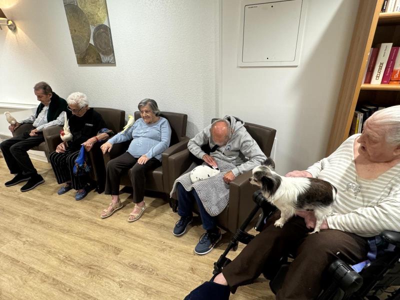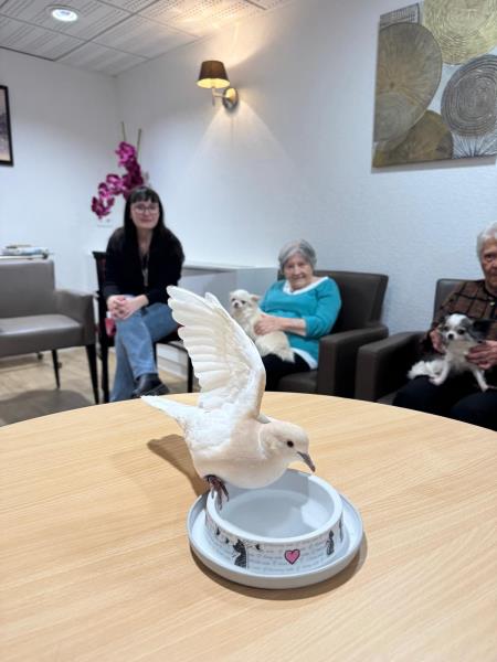Lorsque les ateliers d’art-thérapie n’ont pas lieu, la résidence propose des séances de médiation animale animées par Véronique Bussières, deux mardis par mois.